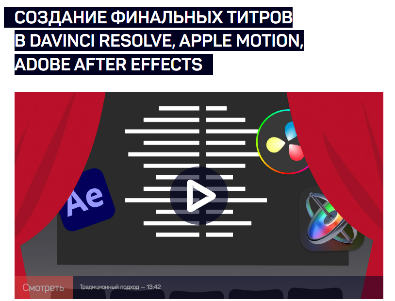 Получи скидку на мастер-класс «Создание финальных титров в DaVinci Resolve, Apple Motion, Adobe After Effects»