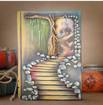 - Обработка обложки самоотвердевающей массой и декупаж.
