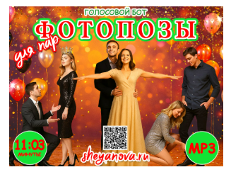 Максимально просто: включите единый mp3-трек, голосовой бот сам проведет участников через все 13 этапов = 13 поз = 13 фото. Никакой подготовки ведущего - все инструкции озвучены! Т.е. справится даже ведущий без опыта проведения.