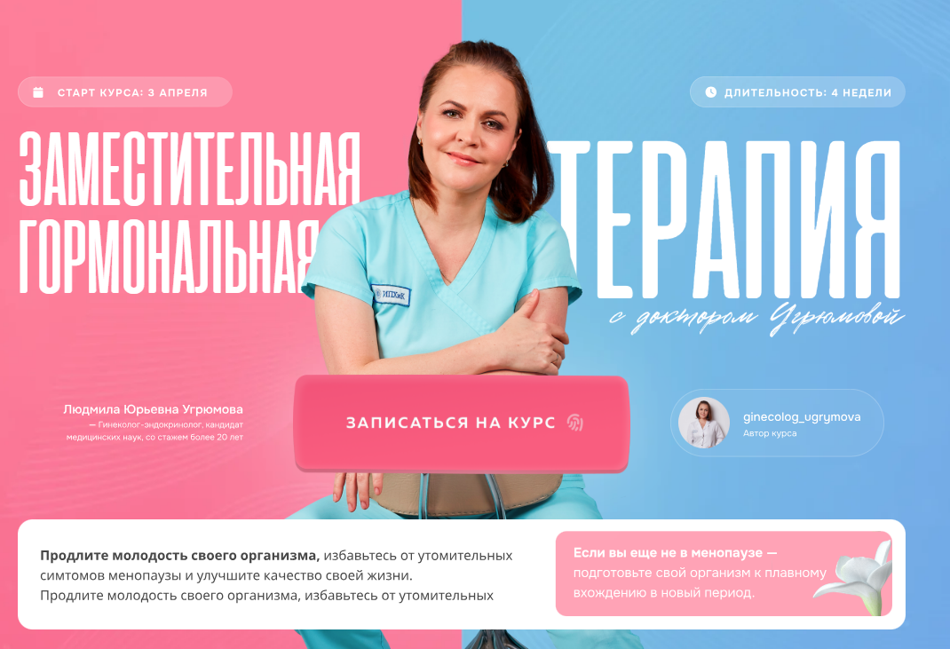 Слив курса Заместительная гормональная терапия [Тариф В группе] [Людмила Угрюмова]