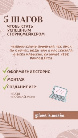 SMM [love.is.masha] Чек-лист «5 шагов чтобы стать успешным сторисмейкером» (2020)