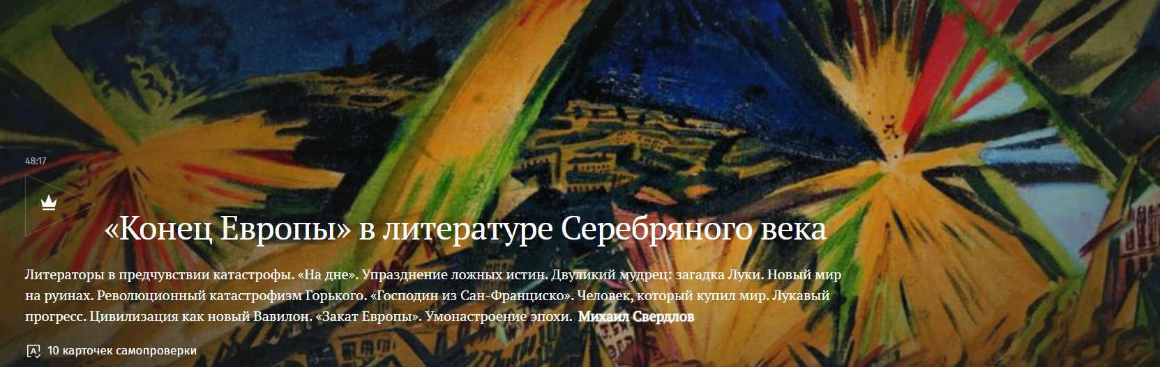 Эта лекция для тех, кто хочет понять, как русские писатели предчувствовали «Закат Европы» задолго до Шпенглера (кстати, на Магистерии есть лекция и об этом философском труде!). Мы разберем: