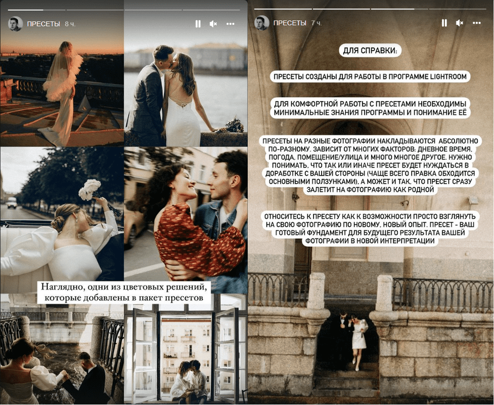 Есть как и сложные цвета: более винтажные, "под пленку". Так и легкие приятные цветовые решения.