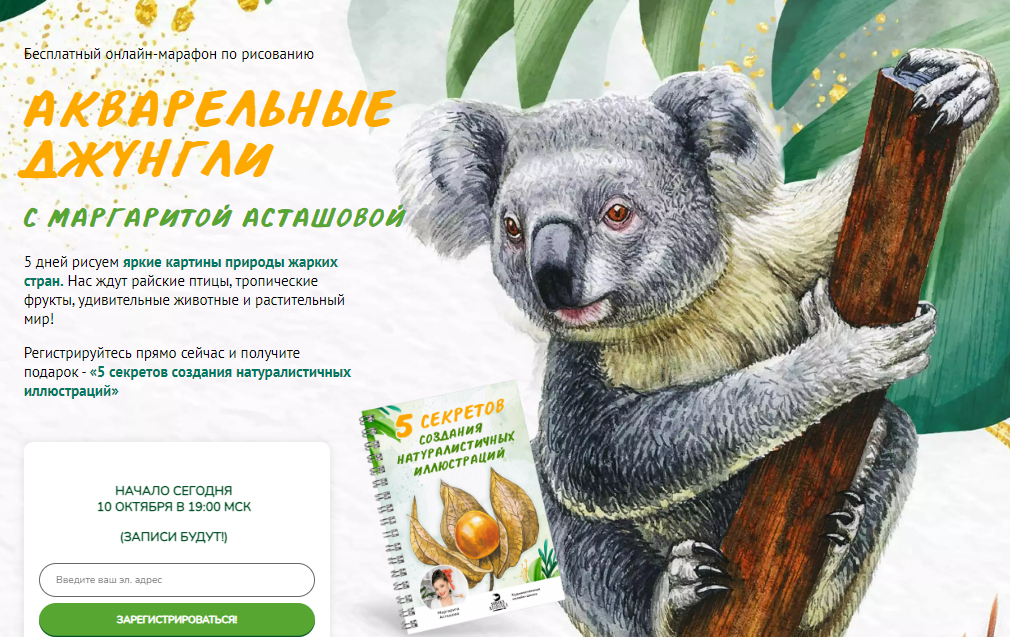 Онлайн-марафон по рисованию Акварельные Джунгли с Маргаритой Асташовой