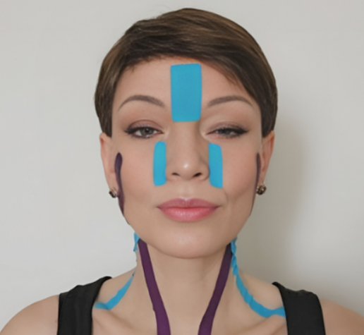 - Схема тейпирования жевательных мышц сохраняет пропорции лица и обеспечивает лифтинг тканей за счет расслабления, дренажа и улучшения иннервации.