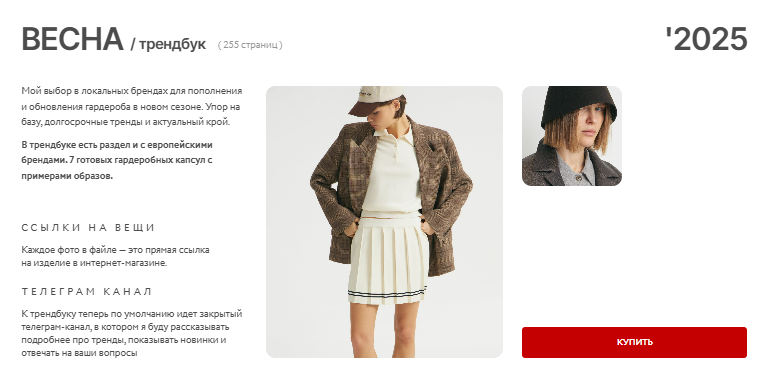 Телеграм-канал. К трендбуку теперь по умолчанию идет закрытый телеграм-канал, в котором я буду рассказывать подробнее про тренды, показывать новинки и отвечать на ваши вопросы