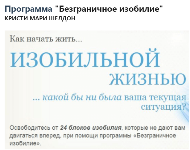Программа для домашнего обучения «Безграничное изобилие» – мультимедийный курс для последовательного избавления от всех ваших блоков изобилия, который доступен исключительно на этом сайте. Вы получите полный набор из 24 модулей, включающих аудиозаписи сеансов энергетической очистки.