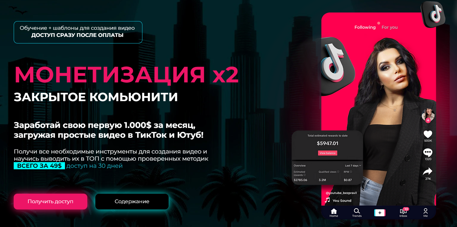 Монетезация Х2- курс по ТикТок + курс по Ютуб + шаблоны для создания видео