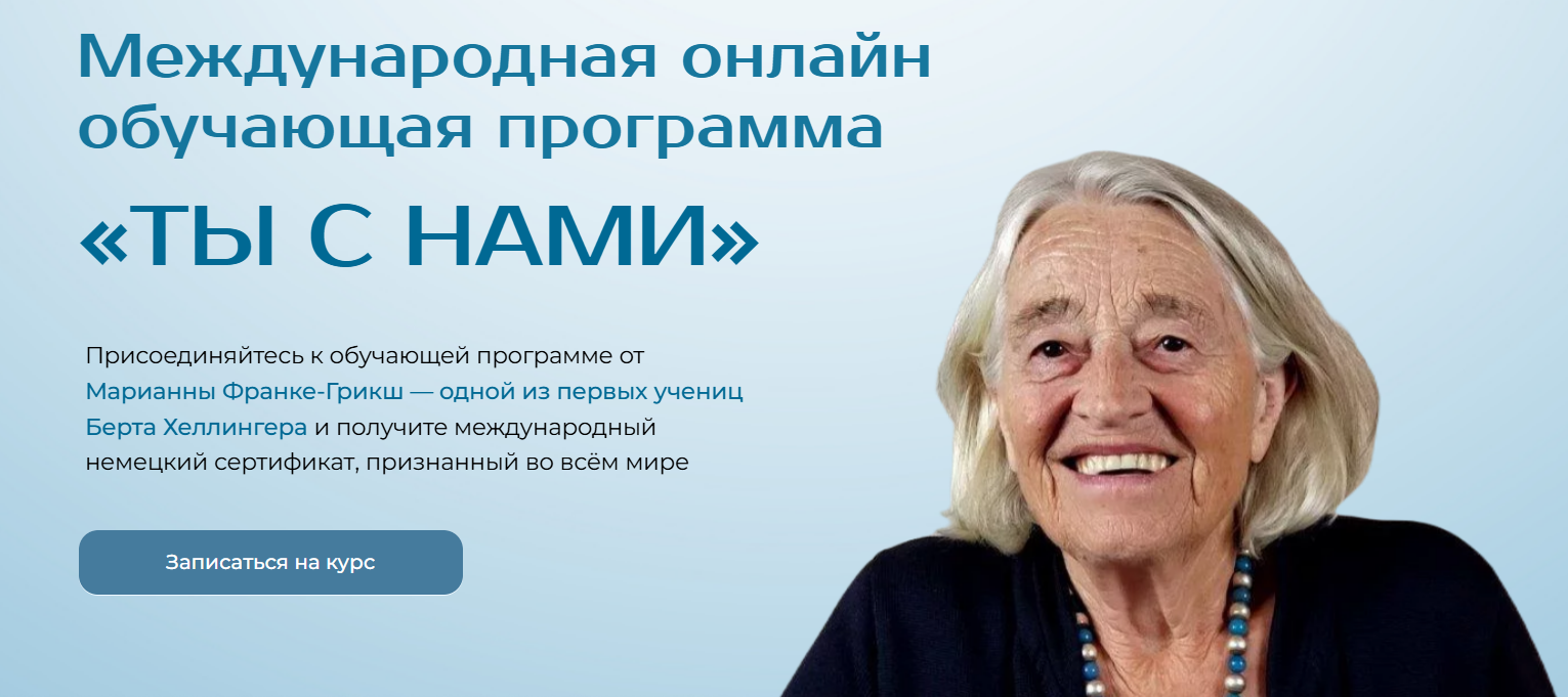 Присоединяйтесь к обучающей программе от Марианны Франке-Грикш — одной из первых учениц Берта Хеллингера.