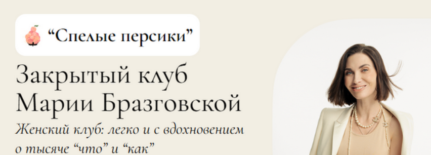 Женский клуб «Спелые персики». Записаться в закрытый клуб Марии Бразговской. Вы можете на нашем сайте. Дополнительная информация по телефону: +79313899100brazgovskaia.ru