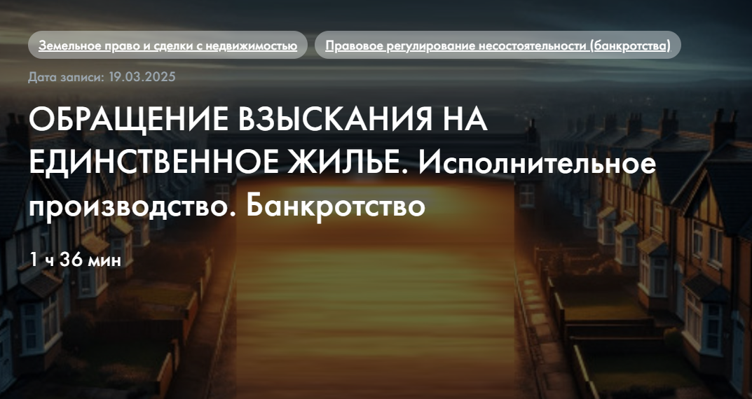 ОБРАЩЕНИЕ ВЗЫСКАНИЯ НА ЕДИНСТВЕННОЕ ЖИЛЬЕ. Исполнительное производство. Банкротство / Лектор Ерохова Мария Андреевна