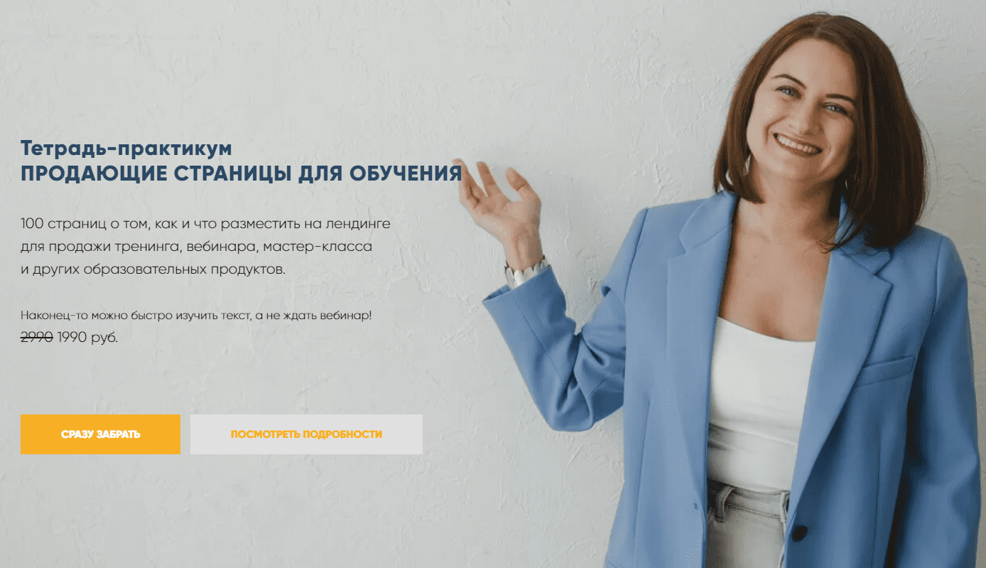 100 страниц о том, как и что разместить на лендинге для продажи тренинга, вебинара, мастер-класса и других образовательных продуктов.