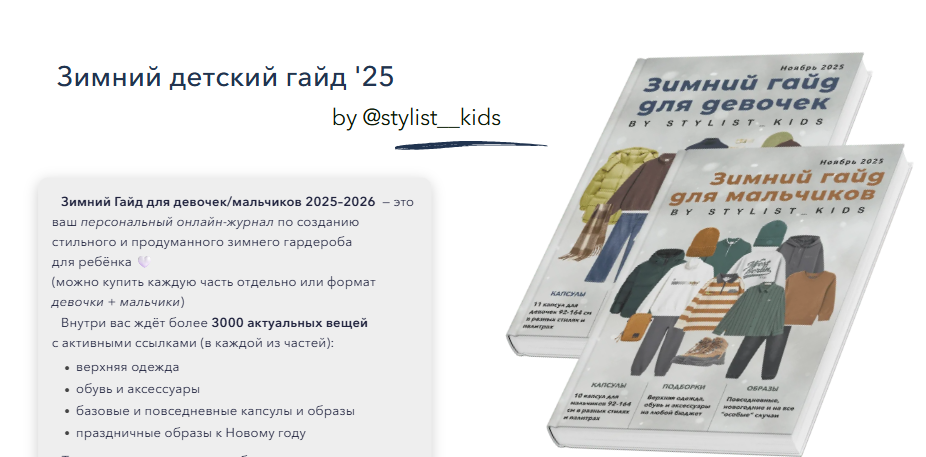 Зимний Гайд 2025–2026 — это ваш персональный онлайн-журнал по созданию стильного и продуманного зимнего гардероба для ребёнка
