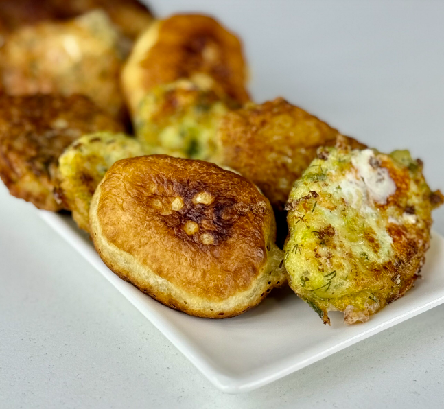 – Оладьи весенние с кабачком и сыром фетта