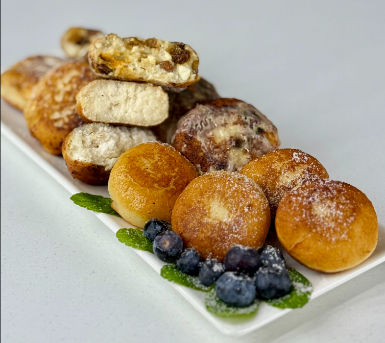 - моя фирмернная - сырники томленые в сладком соусе с изюмом и ванилью,