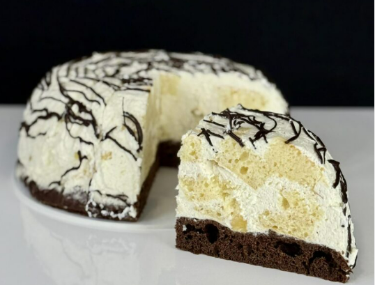 Сметанный крем пропитывает бисквиты до сочности, а ананас в начинке придает десерту пикантный вкус.