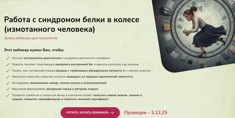 Скачать:Работа с синдромом белки в колесе (измотанного человека) - вебинар для психологов