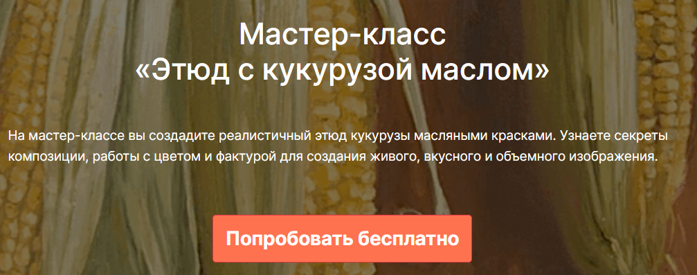 На мастер-классе вы создадите реалистичный этюд кукурузы масляными красками. Узнаете секреты композиции, работы с цветом и фактурой для создания живого, вкусного и объемного изображения.lectoroom.com