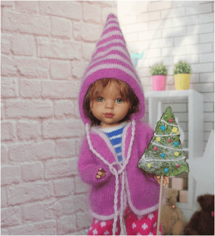 Комплект "Крем брюле" состоит из штанишек на поясе, с кулиской, в которую продернут шнурок, с простеньким жаккардом "горошки", связанной из пряжи Летто, полосатого топа, курточки с карманами и круглой кокеткой, шапочки колпачка очень интересного фасона и исполнения!