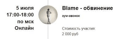 5 июля 17:00-18:00 по мск - зум-звонок «Blame - обвинение»