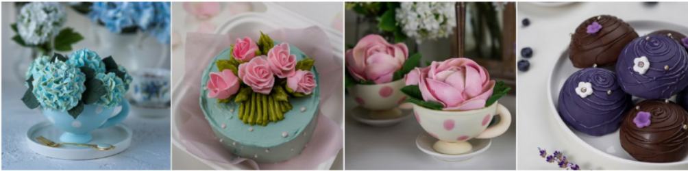 - Птичье молоко «Черная смородина-пломбир». Пирожные с весенним дизайном.