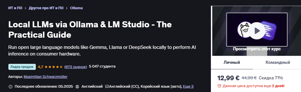 [Maximilian Schwarzmüller] [Udemy] Локальные LLM через Ollama и LM Studio - Практическое руководство (2025)