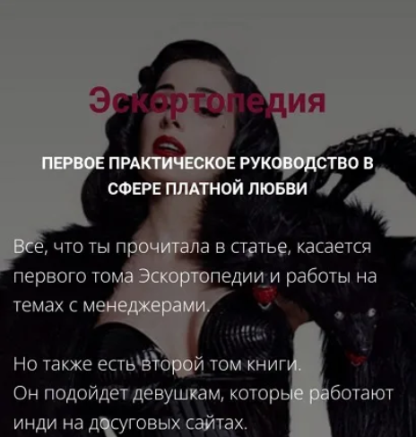 Я готова поделиться с вами Эскортопедией, первой в мире энциклопедией для работниц сферы.
