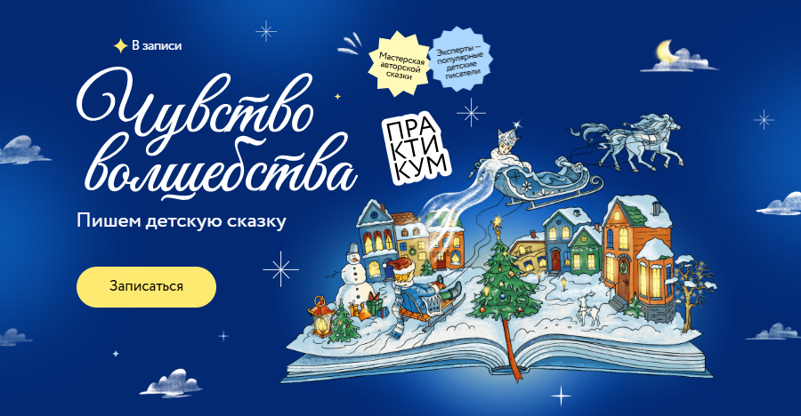 В нашей мастерской мы не просто поговорим о составляющих хорошей истории, а попробуем написать свою — для кого-то первую в жизни, для кого-то сотую. Но в любом случае — это будет волшебство, которое вы сотворите своими руками.