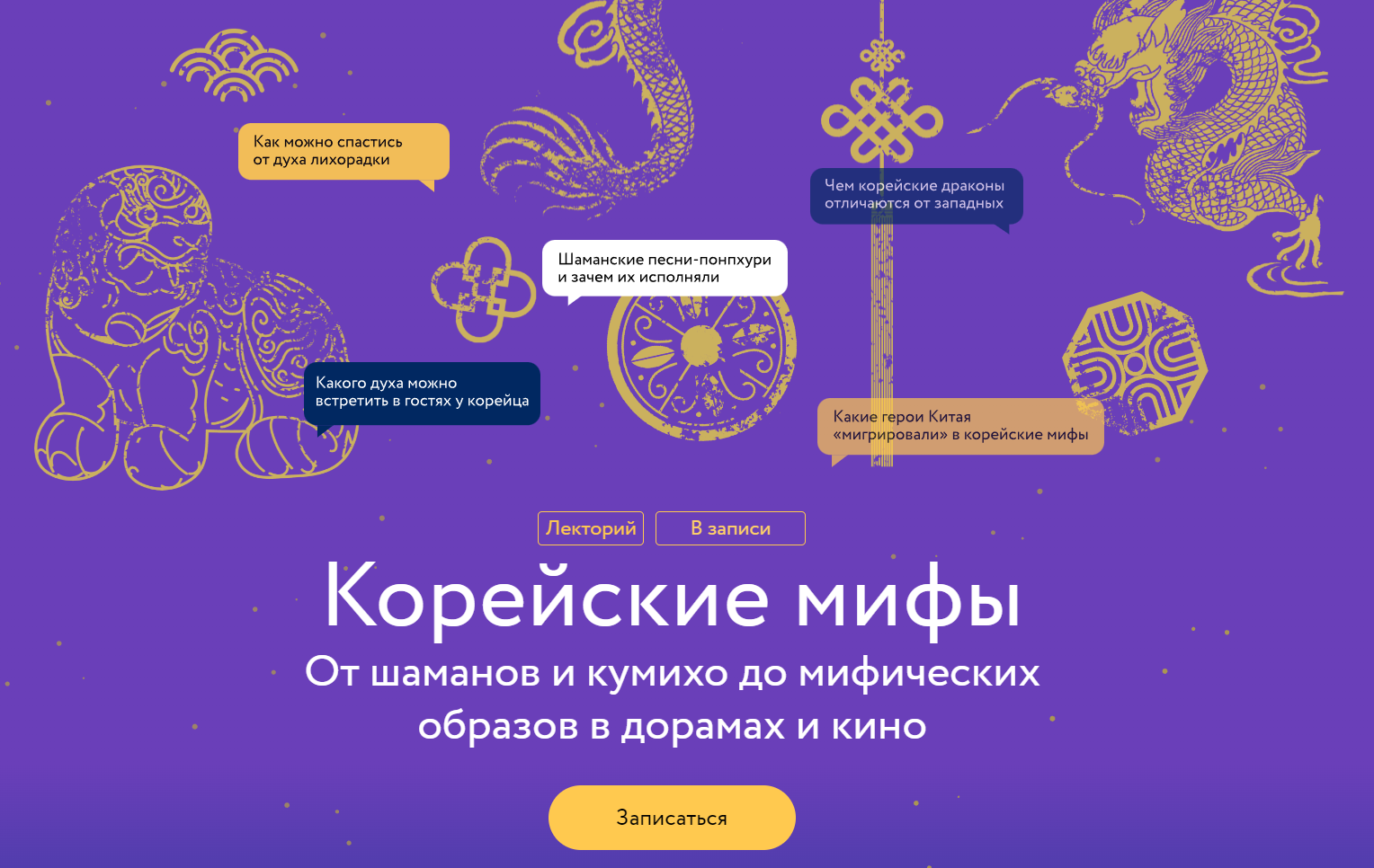 На лектории перенесемся в мир корейских легенд — от древних мифов и шаманских песен до современных версий. И шаг за шагом приблизимся к пониманию нынешней Кореи. Даже если «корейская волна» не увлекла вас с головой, изучать первоисточники ужасно интересно.