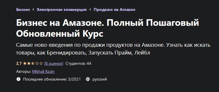 [Mikhail Kozin] [Udemy] Бизнес на Амазоне. Полный Пошаговый Обновленный Курс (2021)