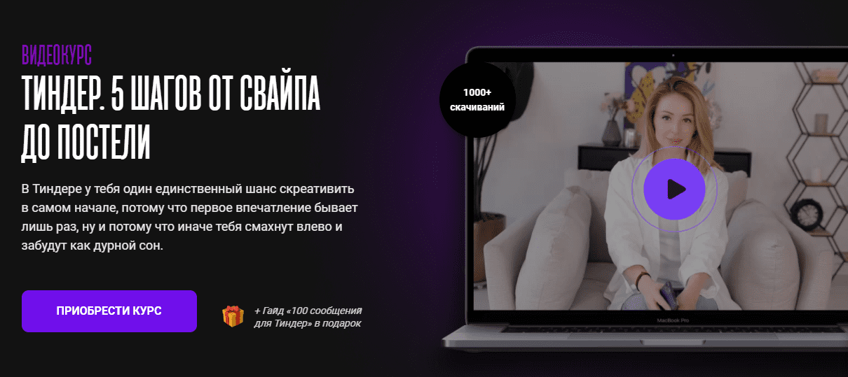 Скачать:Видеокурс "Тиндер. 5 шагов от свайпа до постели"