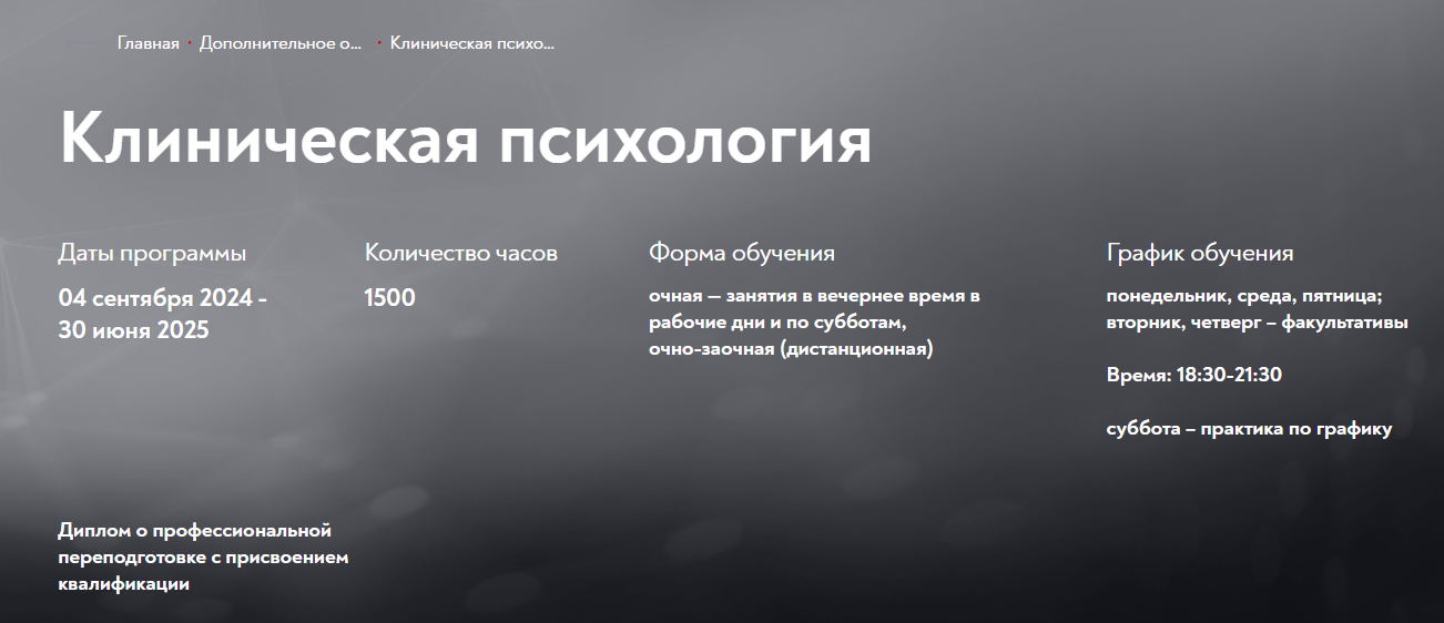 Программа «Клиническая психология» в Московском институте психоанализа - это: