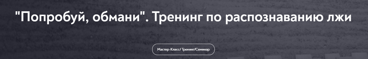 "ÐопÑобÑй, обмани". ТÑенинг по ÑаÑÐ¿Ð¾Ð·Ð½Ð°Ð²Ð°Ð½Ð¸Ñ Ð»Ð¶Ð¸ 2025-01-25T11:00:00.000000Z 2025-01-25T14:00:00.000000Z ÐÑно ÐаÑÑеÑ-клаÑÑ/ ТÑенинг/Ð¡ÐµÐ¼Ð¸Ð½Ð°Ñ Ð¾Ñно и онлайн г. ÐоÑква, ÐÑÑÑзовÑкий пÑоÑÐ¿ÐµÐºÑ 34Ñ14 3000 2500...inpsycho.ru