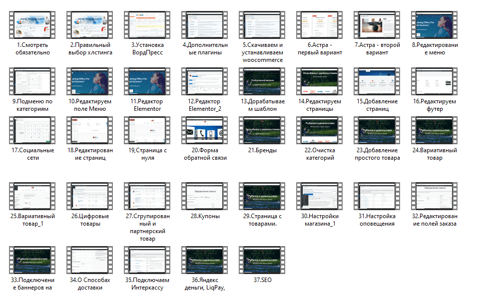 В курсе 37 уроков, и все необходимые для работы файлы.