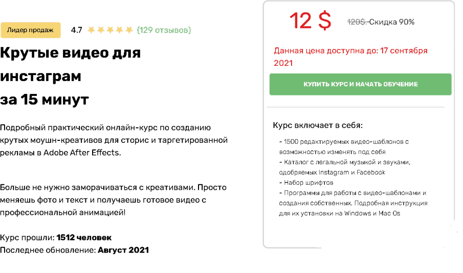 Подробный практический онлайн-курс по созданию крутых моушн-креативов для сторис и таргетированной рекламы в Adobe After Effects.