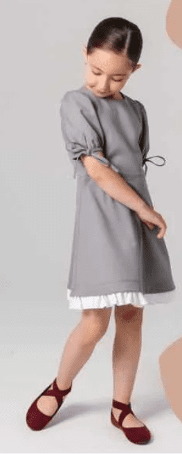 Выкройка платья для девочки. Платье умеренного объёма, отрезное по линии талии. Линия талии завышена. Вырез горловины округлый. На спинке средний шов с застежкой на потайную молнию, талиевые вытачки. Рукава короткие, втачные, объёмные, со сборкой в верхней части оката.modety.ru