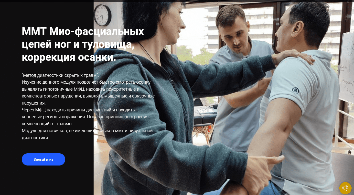 Изучение данного модуля позволяет быстро смотреть осанку, выявлять гипотоничные МФЦ, находить приоритетные и компенсаторные нарушения, выявлять мышечные и связочные нарушения.