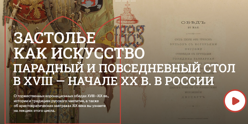 В XVIII веке монарх и его гости обедали под звуки итальянских кантат, столы сервировали серебром, а меню включало шедевры французской кухни. Во второй половине XIX столетия кушанья стали подавать под музыку А. С. Даргомыжского и П. И. Чайковского, а в перечень блюд вернулись старинные национальные яства: расстегаи, борщ, стерлядь на горячее и любимое лакомство русских аристократов — гурьевская каша.