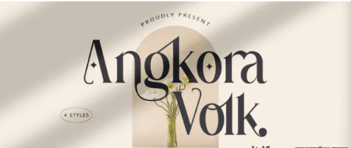 Angkora Volk - стильный богатый шрифт OpenType с буквами, которые словно танцуют и кружатся в гармонии, образуя уникальный и элегантный шрифтовой дизайн.