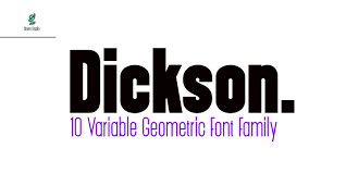 Dickson - шрифт sans, принадлежащий к 10 семействам шрифтов, выполненный в очень жирном стиле. Dickson - это шрифт sans, который имеет тощий вертикальный стиль, представленный в 10 вертикальных весах.