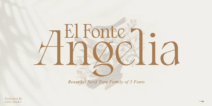 Представляем новый шрифт " El Fonte Angelia " Прекрасное семейство шрифтов с засечками вдохновлено шрифтами с засечками, которые использовались в редакционных СМИ в 70-х и 80-х годах. Такие мягкие и нежные формы, как в шрифте Cooper или плавные, наклонные штрихи в шрифте Windsor, объединены в единый дизайн, который имеет знакомые, свежие и современные вкусы.