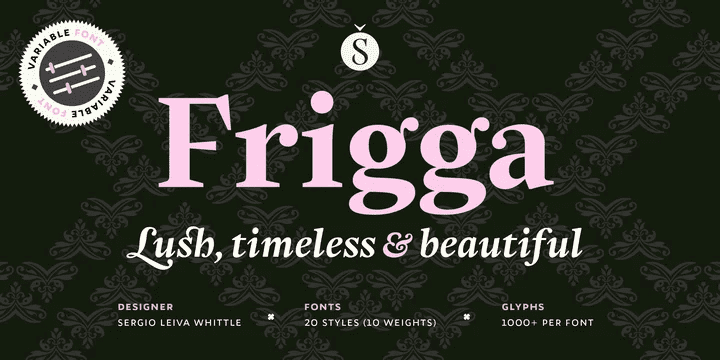 Frigga - это шрифт, уходящий корнями в барочную голландскую традицию текстовых шрифтов и североевропейские шрифтовые формы. Тщательно разработанный для достижения оптимального баланса между его прочной исторической структурой и освежающим репертуаром органических форм, где расцветает его современный дух и естественная красота.
