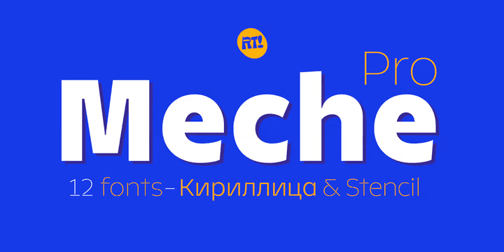Meche Pro - это семейство геометрических шрифтов с полуформальным оттенком, содержит 12 вариантов, от тонкого до черного и трафаретного тонкого до черного, плюс добавлен кириллический алфавит с альтернативами и различными лигатурами, специально для заголовков.