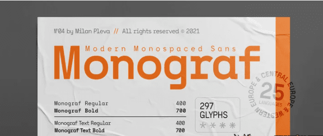 Таким образом, в общем пакете вы получаете 4 части этого шрифта: Monograf Regular, Monograf Bold, Monograf Text Regular и Monograf Text Bold.