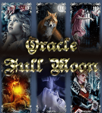 Оракул Полной луны (Oracle full moon) имеет нереальные, абсолютно уникальные, порой пугающие образы, залитые лунным светом. Роскошные готические сюжеты — конкретные и тесно связаны со значением Аркана.