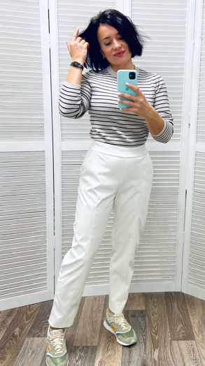 Белые брючки из искусственной кожи - самая практичная вещь в моем гардеробе!