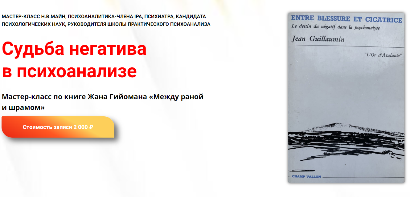 «Новое описание Бессознательного: неудача, отсутствие, разрыв или тупик, нехватка, исключенная часть, разница (различие?), молчание или неизвестное, Другой, несказанное, непредставленное или непредставимое, неназванное, образы пустоты, негатив, негативность. Столько слов произносится в последние десятилетия, которые могли бы претендовать на описание того, о чем пойдет речь в этой книге», — так начинается книга известного французского психоаналитика Жана Гийомана, посвященная феномену негатива в психоанализе.