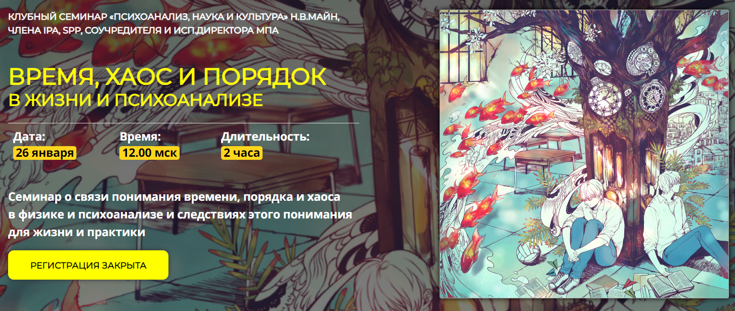 На семинаре разберемся в современных взглядах физиков на эти темы и попробуем их соединить с психоаналитическим пониманием. Интересно, что у нас получится, и к чему мы придем?