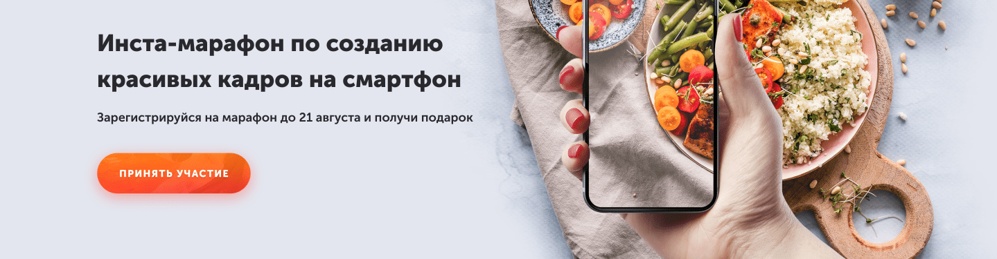 Хочешь наконец научиться красиво фотографировать и создать блог своей мечты? Всего 25 минут в день и через неделю твоя страница изменится до неузнаваемости! Марафон длится 7 дней. За это время вы посмотрите крутые видеоуроки. Узнаете лайфхаки, секреты, получите идеи и инструкции для сногсшибательных снимков.
