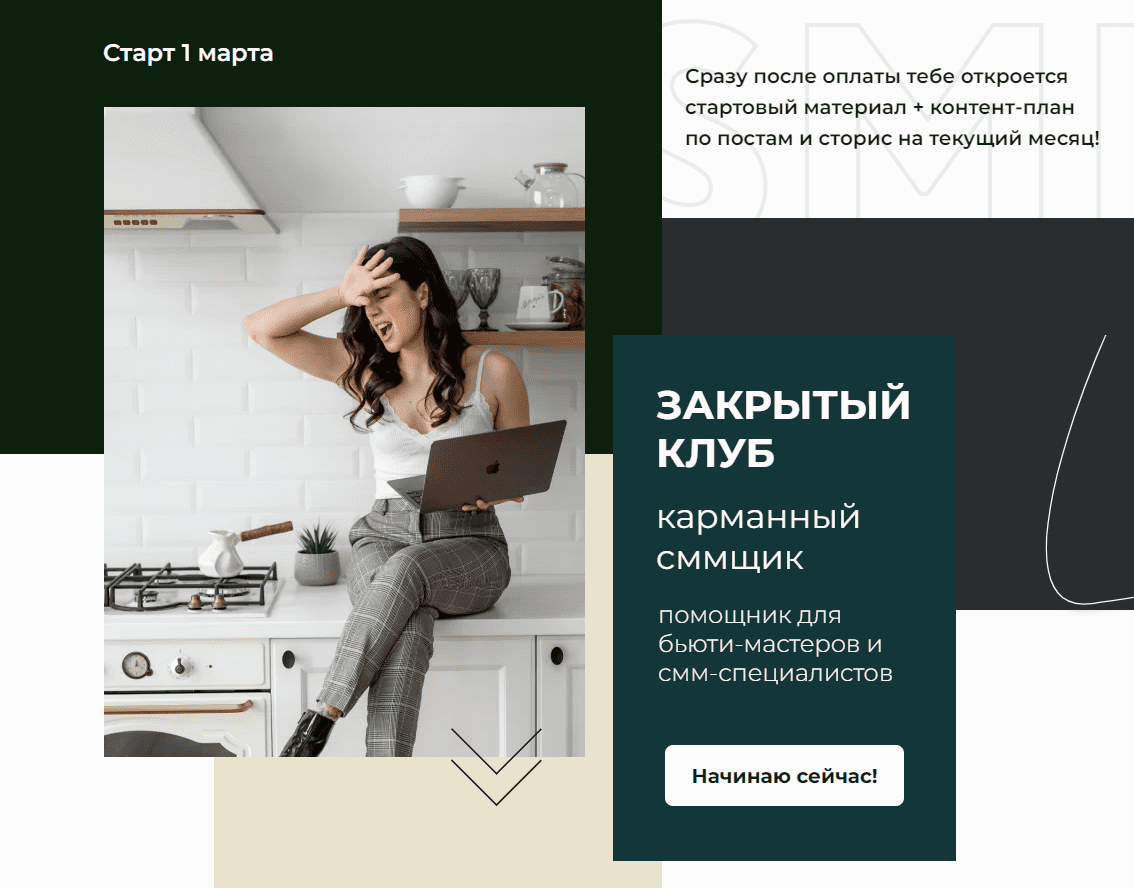 Новый формат обучения - ежемесячные вебинары, сборник инструкций и пошаговых рецептов по привлечению клиентов, идеи, креативы, контент-планы и многое другое. Никаких многочасовых лекций и воды - клуб станет твоим личным СММ-помощником, который просто и эффективно скажет, что делать, чтобы привлечь клиентов!